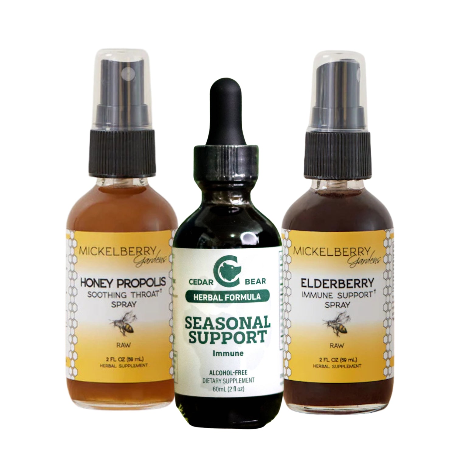 As the seasons shift, our bodies naturally crave balance and care. Our Seasonal Support Bundle is designed to strengthen your immune system, soothe the throat, and help you adapt gracefully to seasonal changes. Inside, you’ll find handcrafted tinctures that support respiratory and digestive health while calming the nervous system, along with Mickelberry Gardens Honey Propolis Throat Spray and Elderberry Immune Support Spray — both convenient, on-the-go remedies crafted to keep you strong and resilient all season long.