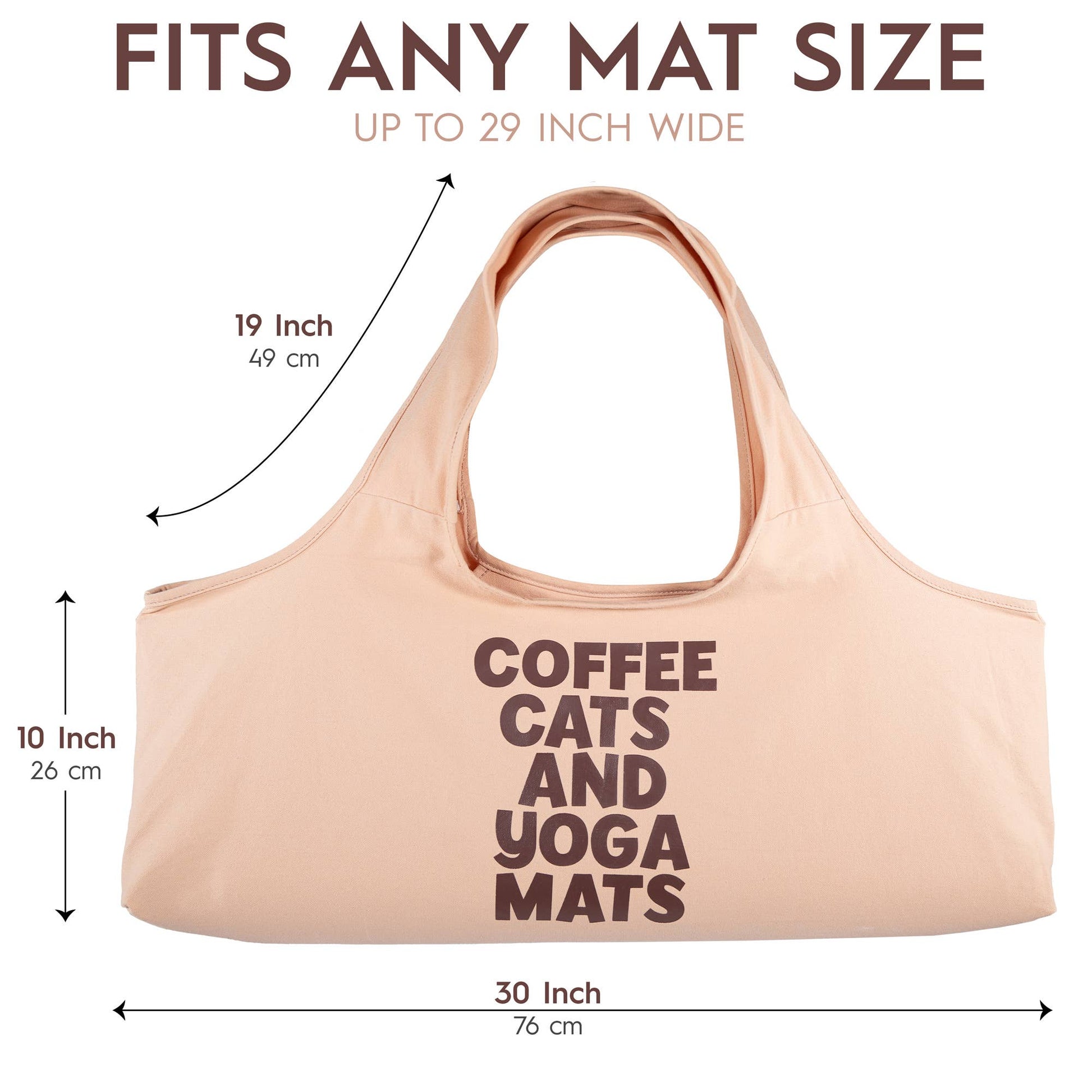 Not just for Yoga equipment! Use this fashionable tote bag as a purse, pocketbook, shopping bag, travel bag, carry on luggage, beach bag or any other occasion that calls for a stylish over the shoulder bag. There are so many uses and the statement of "Coffee Cats and Yoga Mats" is sure to get attention and compliments.