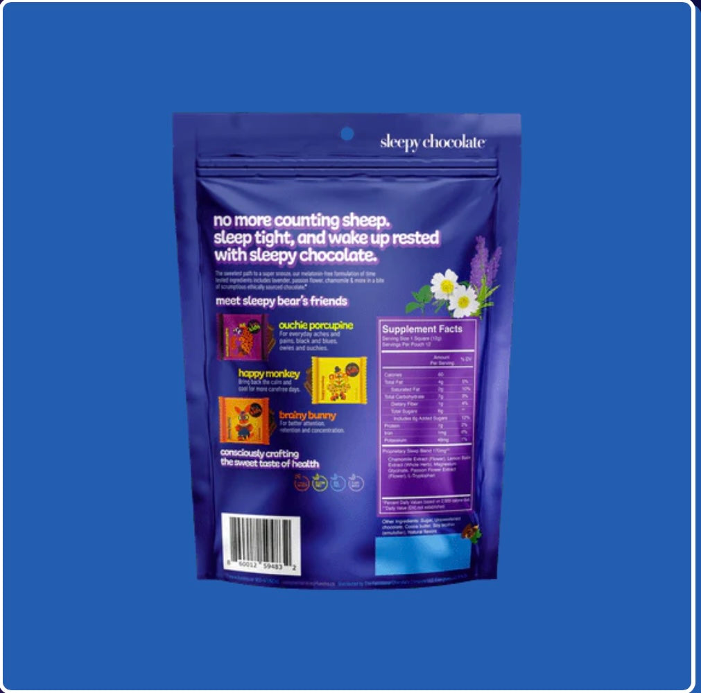 Make bedtime a breeze with our Sleepy Chocolate for Kids! 🌙 This delicious treat combines creamy, ethically sourced chocolate with gentle botanicals like chamomile and lemon balm to help your little ones relax and drift off to dreamland. Why Kids (and Parents) Love It: Yummy Taste: A chocolatey treat kids adore, making bedtime something to look forward to. Gentle Ingredients: Infused with calming botanicals and a touch of magnesium, thoughtfully crafted for kids. Parent-Approved: Free from melatonin, artificial flavors, colors, and preservatives—just simple, wholesome ingredients. A Sweet Way to Sleep Tight: We believe restful nights should be just as enjoyable as playtime. Our Sleepy Chocolate for Kids turns the wind-down routine into a comforting and delicious experience, helping your child fall asleep with ease. Give your little ones the gift of sweet dreams with Sleepy Chocolate for Kids—a bedtime treat parents can feel good about! ✨