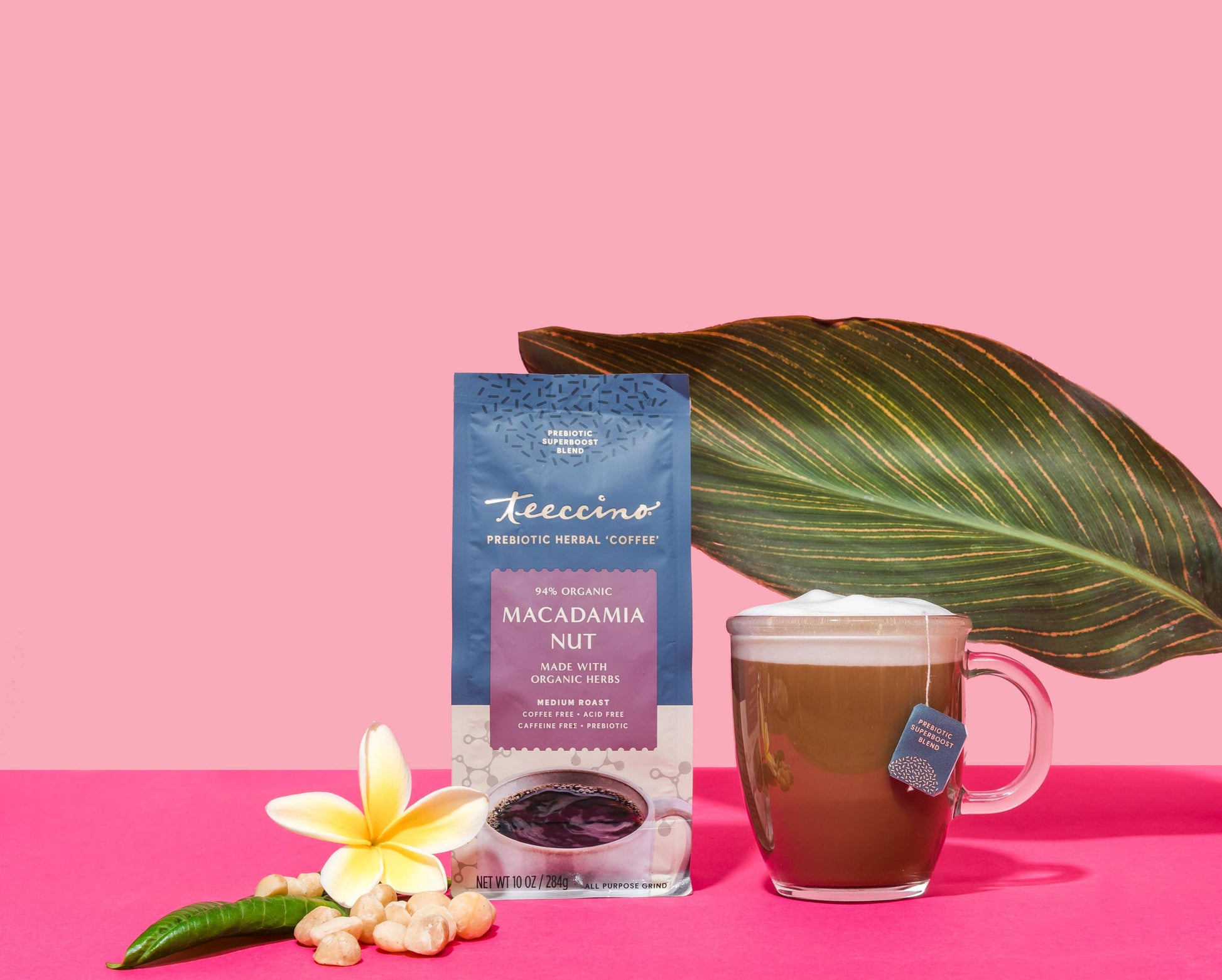 Nourish your probiotics with Macadamia Nut prebiotic herbal coffee.