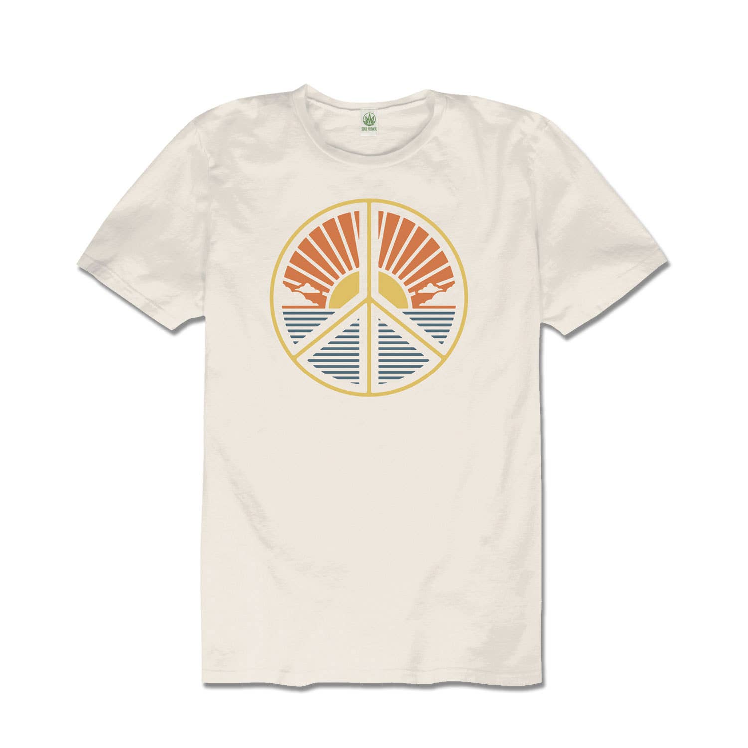 Let this men's Peace Scene Organic T-shirt take you into a peaceful state. Every time you wear this organic tee, be reminded of the peace that comes from within. Features a peace scene image. Made in the USA. 100% organic cotton. Natural.