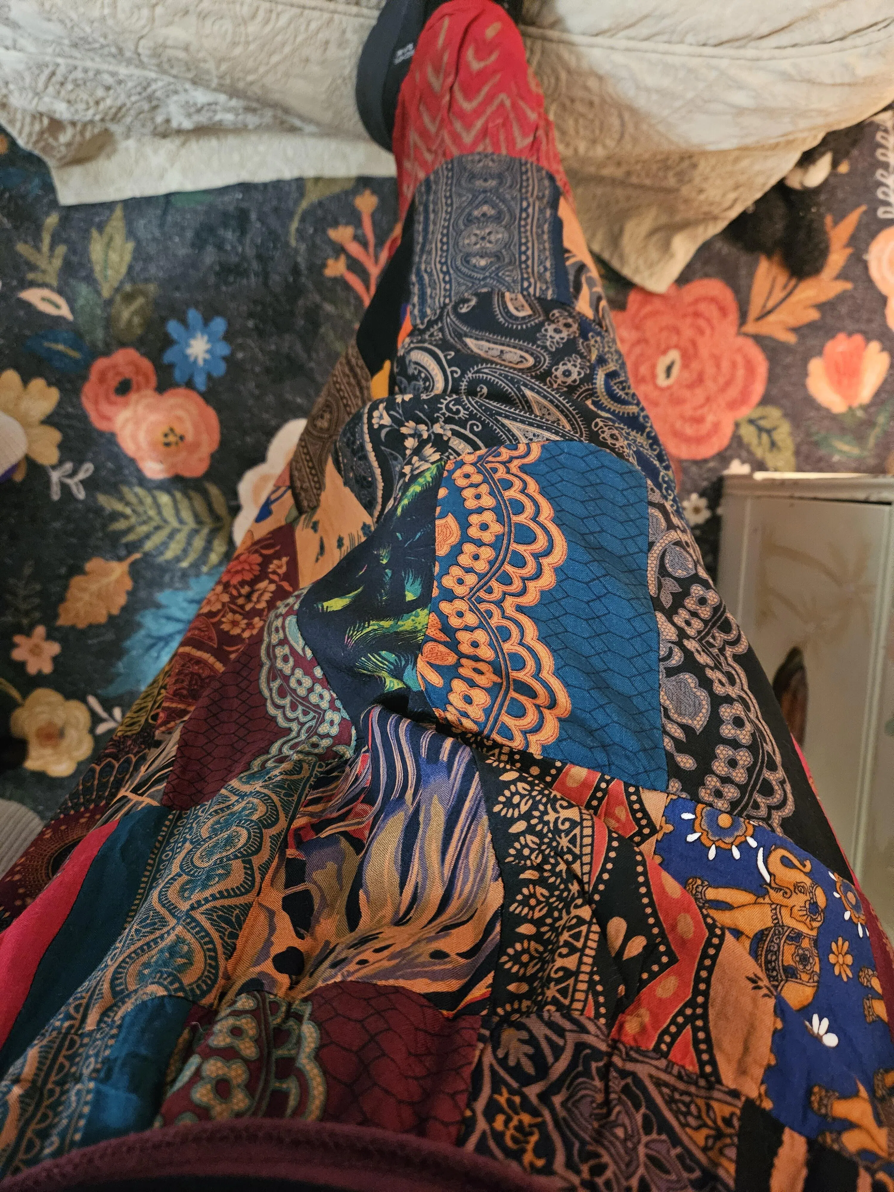 MIXED PATCH LONG FLARE SKIRT 100% Rayon