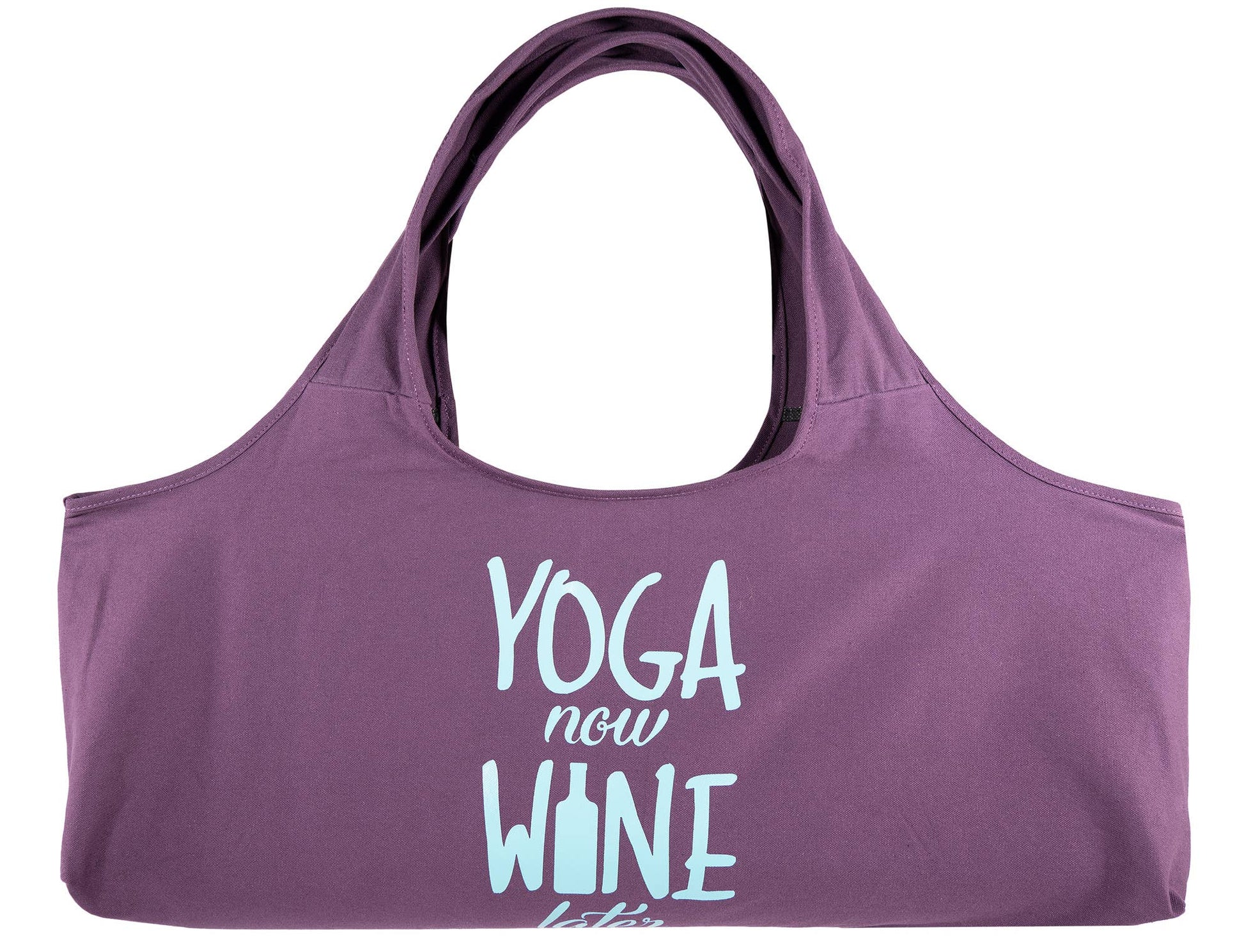 Not just for Yoga equipment! Use this fashionable tote bag as a purse, pocketbook, shopping bag, travel bag, carry on luggage, beach bag or any other occasion that calls for a stylish over the shoulder bag. There are so many uses and the statement of "Yoga Now Wine Later" is sure to get attention and compliments.